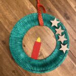 Eine weitere einfache Idee mit Papptellern ist es, einen Adventskranz zu basteln. Wir hatten hierfür extra schon Teller grün angemalt. In der Kinderstunde kam man uns nun zuvor und hat sie dort gebastelt – mal schauen, was mir zu den übrigen grünen Tellern noch einfällt. 🙂
